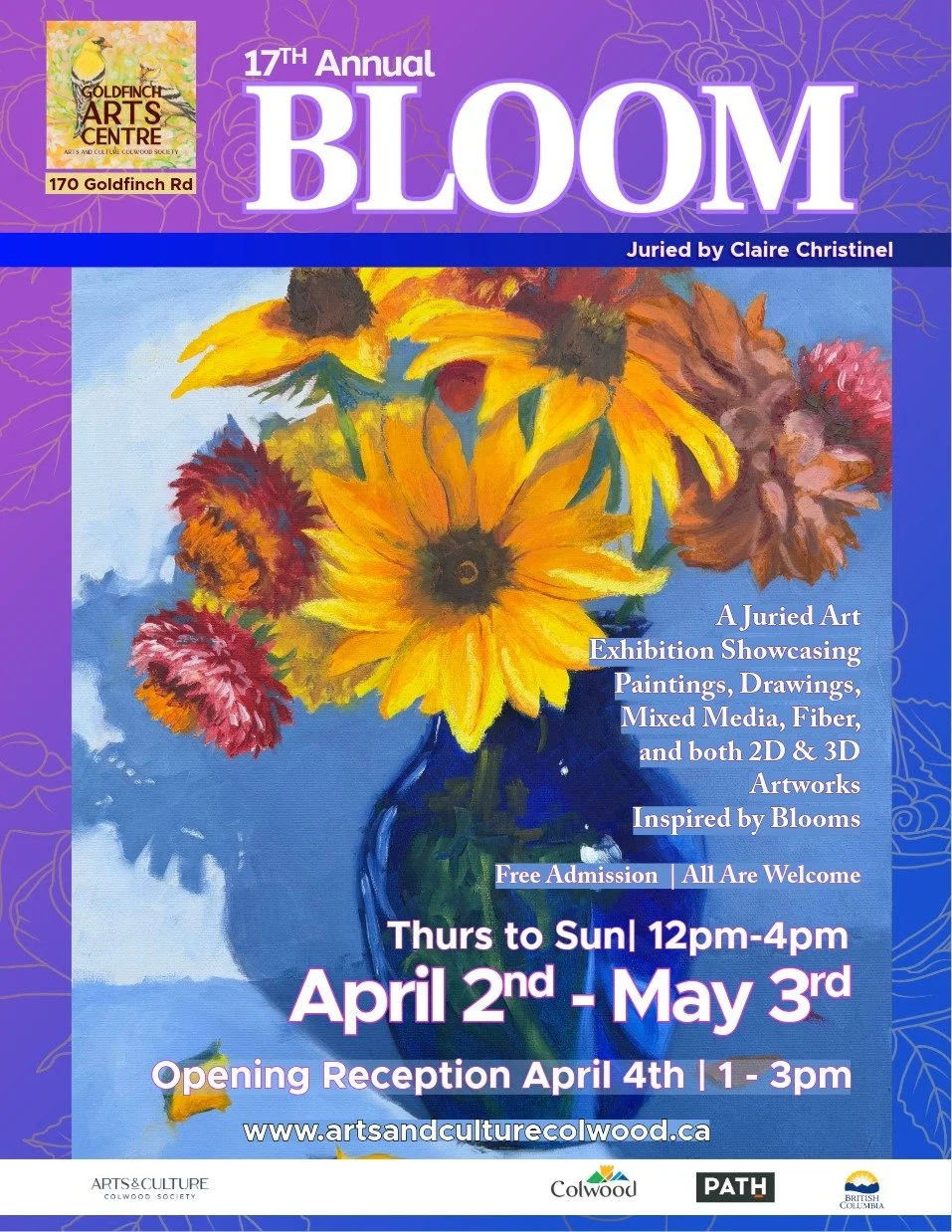 A Juried Art Exhibition Showcasing Paintings, Drawings, Mixed Media, Fiber, and both 2D & 3D Artworks Inspired by Blooms